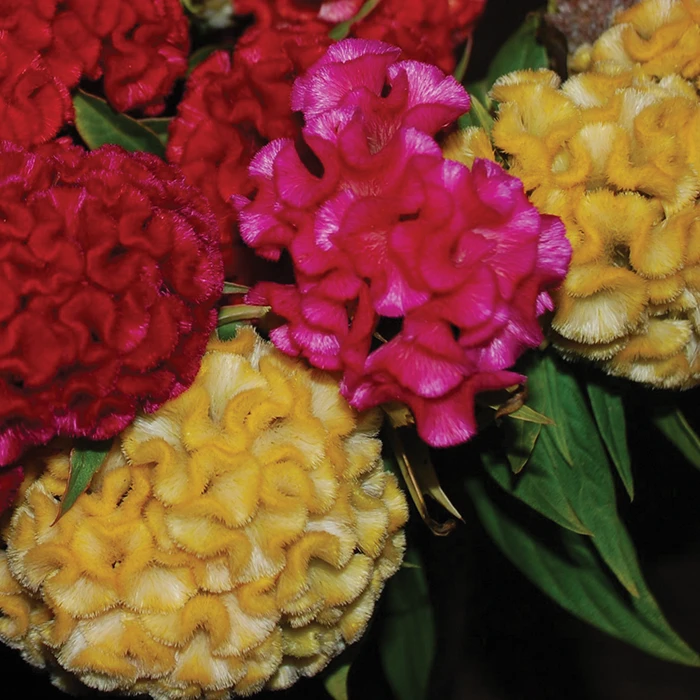 Vibrant, globe shaped blooms are perfect for bouquets. Large, dense heads appear in shades of red, yellow, orange and pink. Strong stems hold the blooms upright in garden beds and bouquets. Ht: 24-36″.