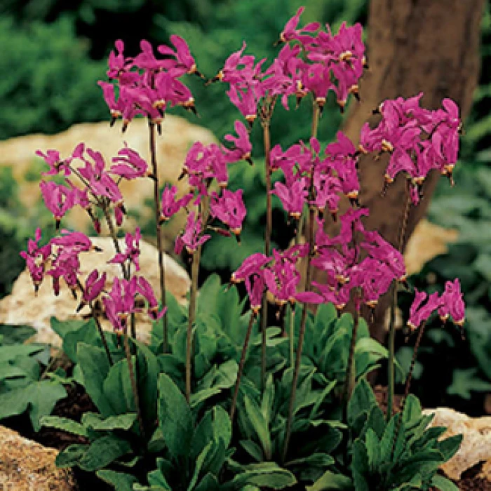 Woodland Wildflowers. Made for shade. We offer a selection of the most popular wildflowers often found in wooded areas of Wisconsin. For the most part, they are shade loving or shade tolerant and prefer a slightly acid soil rich in humus. Our wildflowers are collected on a sustained basis, obtained from reputable licensed sources. Shooting Stars – Zones 4-8 – Umbels of 10 to 20 strongly reflexed flowers are purplish pink and sometimes white, all with pointed anthers. Plants have basal rosettes of long leaves and bloom from April to June. Ht: 8-15″.